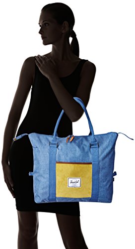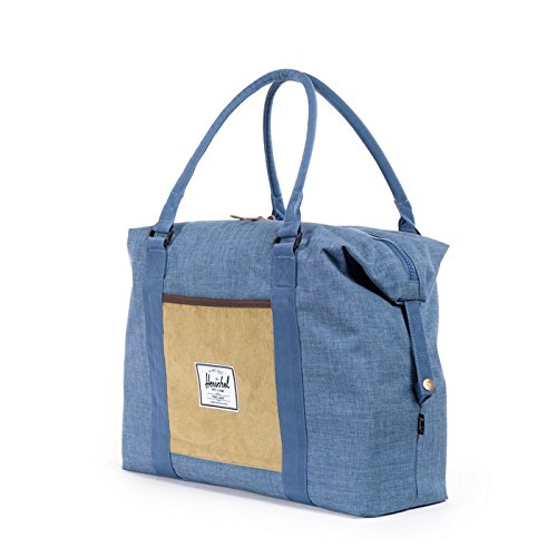 Styled for the ranch with elements such as full grain leather details, textured crosshatch fabric and a corduroy front pocket, this duffel offers carryall functionality with a large main compartment and long easy to hold handlesFeature