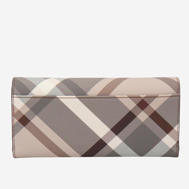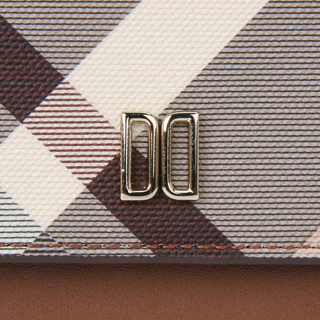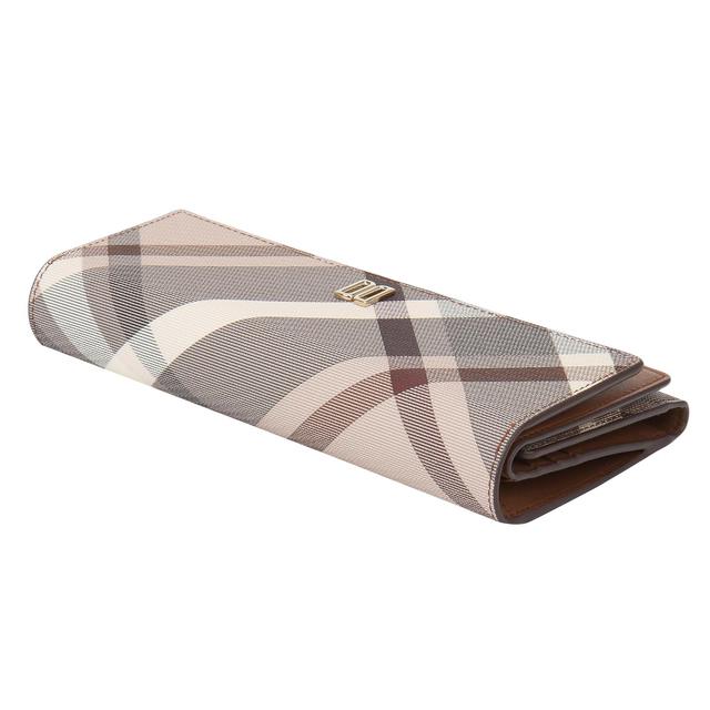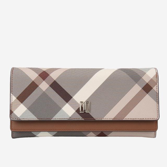 DD 로고 장식과 클래식한 체크 패턴의 배색 디자인으로 세련된 외관을 연출한 장지갑입니다.
