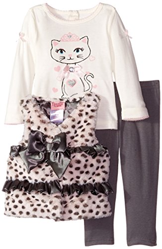 -. Title : Nannette Baby Girls' 3 Piece Fur Vest Set with Cat Screenprint On Tee