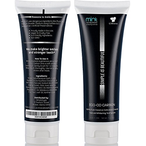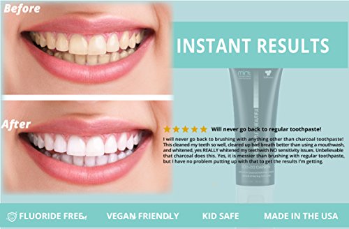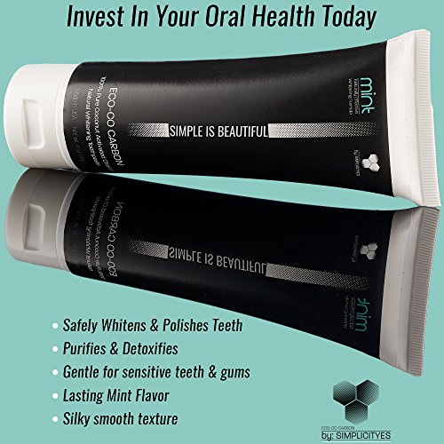 * Environmentally Responsible - From Beginning To End Charcoals Do Not Harm The Environment * Activated Charcoal Has No Negative Carbon Footprint * Does Not Include Harmful Foaming Agents * Proudly Made In The USA * Safely Whitens And Polishes Teeth * Safe For Kids * Naturally Eliminates Bad Breath * Activated Charcoal Is A Renewable Resource * Only The Purest Raw Materials Used * Coconut Activated Charcoal, Not Hardwood * Mess Free Unlike Activated Charcoal Powders * Purifies And Detoxifies * Gets In All The Nooks And Crannies Unlike White Strips * Removes Tooth Stains From Coffee, Tea, Wine, Berries etc. * Gentle For Sensitive Teeth And Gums * Doesn't Contain Chemicals/Bleach * Tastes Great (Light With A Hint Of Mint) * Silky Smooth Texture Invest in Your Oral Health Today! Click "Add to Cart" While Supplies Last!Feature
