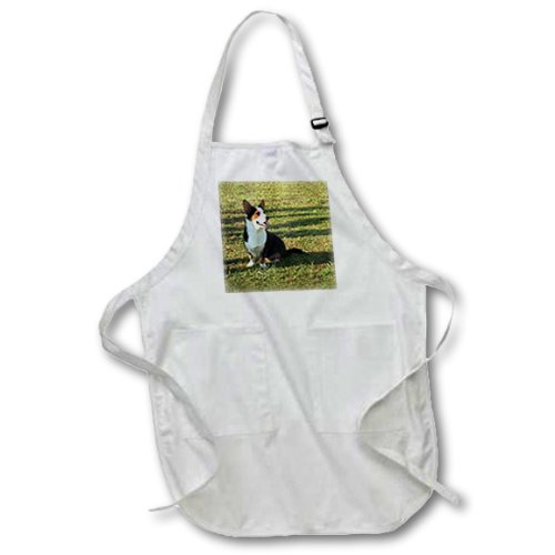 3dRose apr_963_1 22 by 30-Inch Welsh Cardigan Corgi Apron with Pockets, Full, White