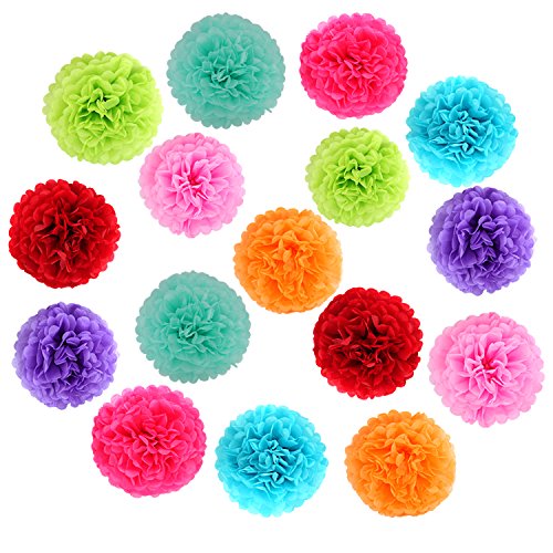 Multicolor Tissue Paper Pom Poms Flower Plastic Swirl Polka Dot Paper Garland Decorations(Total 25 Pcs )
