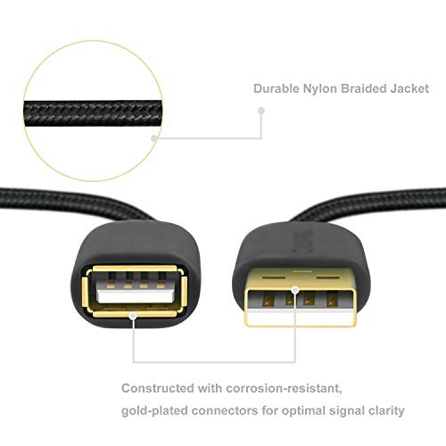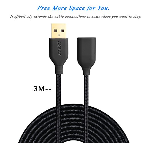 OKRAY 2 Pack--10FT(3M) Nylon Braided USB 2.0 Extension cable Extender Cord - A Male to A Female with Gold-Plated Connector (Black Black)