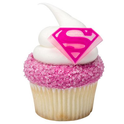 Product Description Let super girls know how special they are with sweet treats featuring these Supergirl cupcake rings.Package of 24. Plastic. Size: 1.25 inch x 1.75 inch. 0