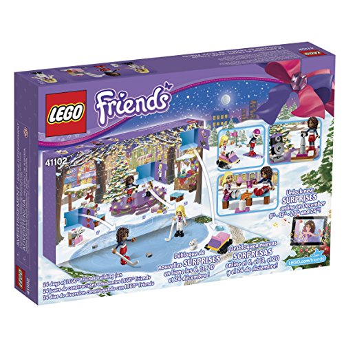 -. Binding : Toy -. Brand : L.E.G.O -. EAN : 0703633214911 -. Feature : Includes Andrea and Liza mini-doll figures / Features 24 gifts, each enclosed in its own compartment in a L.E.G.O Friends holiday-themed calendar / Open a new compartment each day and count down to Christmas with buildable gifts / Collect 24 buildable surP.R.Ises including ski equipment, a rabbit, Knock 'Em Over game and a Christmas tree -. Genre : strategy -. IsAdultProduct : 0 -. ItemPartNumber : 6099698 -. Label : L.E.G.O -. LegalDisclaimer : ApproP.R.Iate for ages 5+. -. Manufacturer : L.E.G.O -. Model : 6099698 -. MPN : 6099698 -. NumberOfItems : 1 -. PackageQuantity : 1 -. PartNumber : 6099698 -. ProductGroup : Toy -. ProductTypeName : TOYS_AND_GAMES -. Publisher : L.E.G.O -. ReleaseDate : 2015-09-01 -. Studio : L.E.G.O -. Title : L.E.G.O Friends 41102 Advent Calendar Building Kit -. UPC : 703633214911 -. Warranty : No Warranty