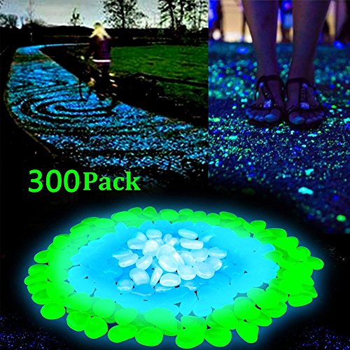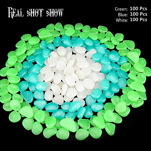 300pcs Glow in the Dark Garden Pebbles for Walkways & Decor and Plants Luminous Stones in Blue & Green & White