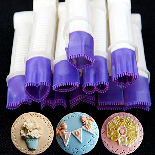 uxcell Plastic Home Kitchen Cake Cookies Pastry Baking Clip Mold Decoration Tools 10 in 1 White Purple