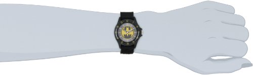 -. Binding : Watch -. Brand : DC Comics -. Department : boys -. EAN : 0078433208645 -. Feature : Round watch with Batman logo face featuring labeled hour and minute hands and 12-hour and 60-minute markings / 33 mm metal case with glass dial window / Quartz movement with analog display / Canvas band with hook-and-loop closure / Not water resistant -. Label : DC Comics -. Manufacturer : DC Comics -. Model : BAT5038 -. MPN : BAT5038 -. PackageQuantity : 1 -. PartNumber : BAT5038 -. ProductGroup : Watch -. ProductTypeName : WATCH -. Publisher : DC Comics -. ReleaseDate : 2012-10-30 -. Studio : DC Comics -. Title : Batman Boys' BAT5038 Black "Time Teacher" Batman Watch -. UPC : 078433208645