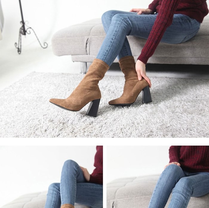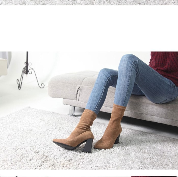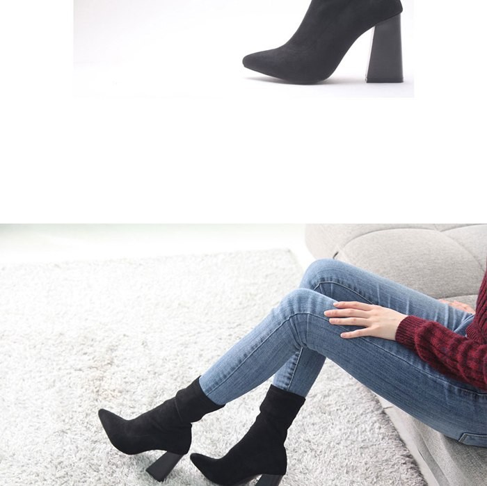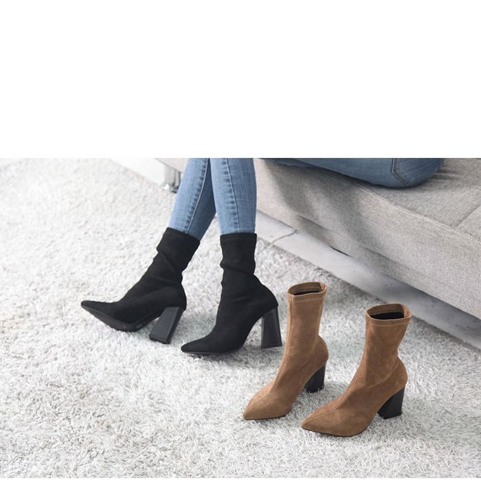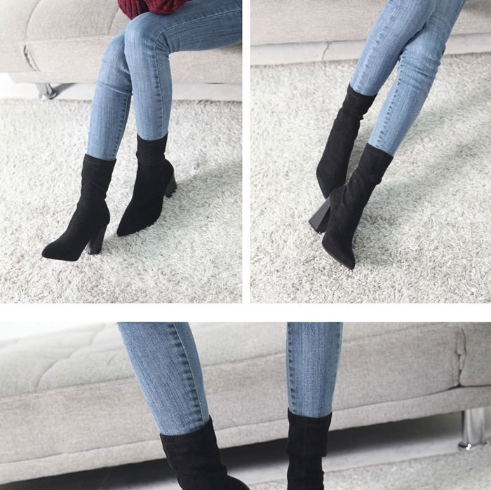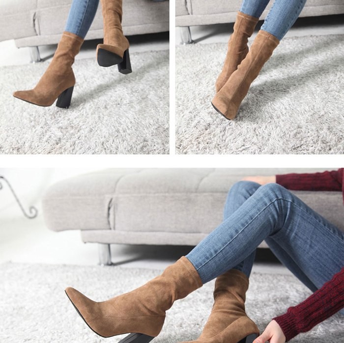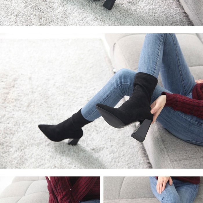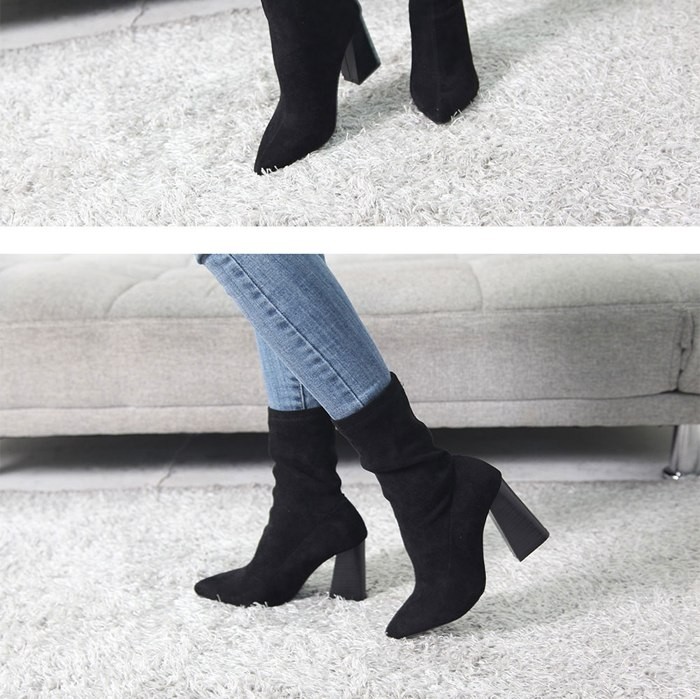 商品名:ストレッチブーツ レディース チャンキーヒール 太ヒール スエード調 2017 秋冬 ファッション 靴 婦人靴