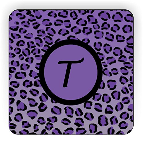 Rikki Knight Letter "T" Initial Purple Leopard Print Monogrammed Design Square Fridge Magnet