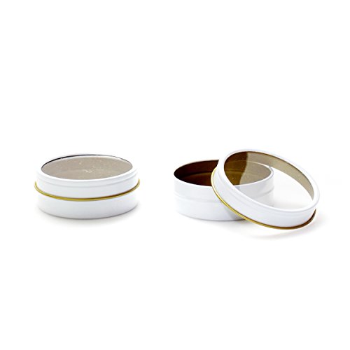 Mimi Pack 2 oz Tin Can Shallow Round Clear Window Slip Top Lid For Salves, Favors, Spices, Balms, Candles, Gifts Limited Run Series 24 Pack (White)