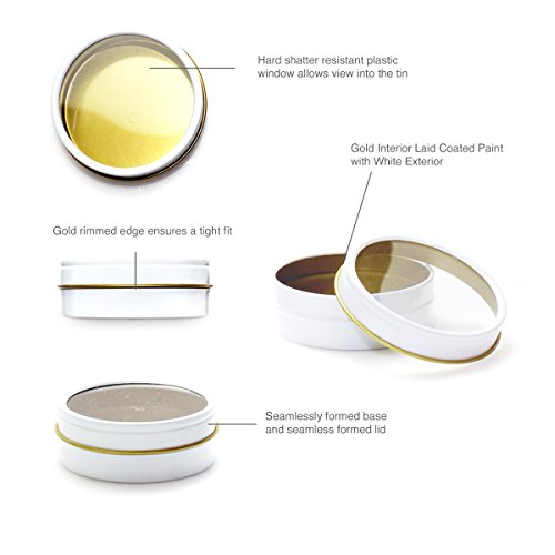HIGH QUALITY - Mimi Pack Premium Shallow Window 2oz Round Tin Cans are made from premium steel tin plates. These high quality tins are made to be strong and durable.