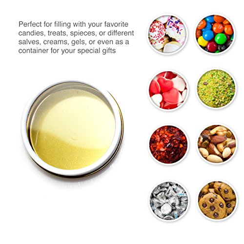 MULTIPURPOSE - These high quality tins are great for a variety of uses and projects. Use them as candy tins as favors for your special event. Use them as packaging for your gifts. Use them for spices or preserving food items. Add a magnet to the bottom or use them for your different creative craft projects.