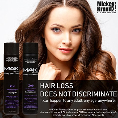Help stop hair loss and accelerate hair growth with MAK Hair product Zoe vitamin hair growth shampoo. Helps treat male pattern balding, thinning & receding hair, alopecia areata, hormonal imbalance, underactive thyroid. Strengthens follicle, Instant volumizing, no build up.