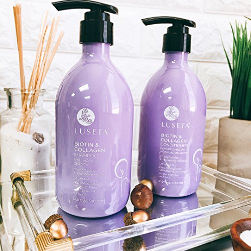 LUSETA BIOTIN & COLLAGEN SHAMPOO & CONDITIONER SET - THICKENING FOR HAIR LOSS & FAST HAIR GROWTH - INFUSED WITH ARGAN OIL TO REPAIR DAMAGED DRY HAIR - SULFATE FREE PARABEN FREE
