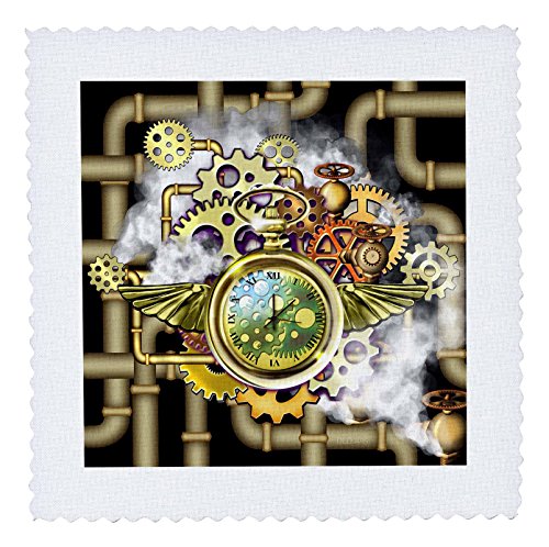 3dRose A Steampunk Time Machine with Cogs, Gears, Pipes and Watch. - Quilt Square, 6 by 6" (qs_216712_2)