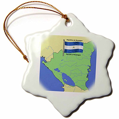 3dRose orn_50279_1 Flag and Map of Nicaragua with Republic of Nicaragua Printed in Both English and Spanish Snowflake Decorative Hanging Ornament, Porcelain, 3-Inch