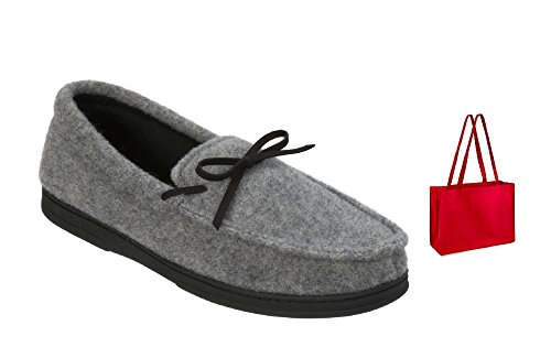 -. Binding : Apparel -. Brand : Dearfoams -. Department : mens -. Feature : Includes: Slippers and 16"x6"x12" Reusable Tote/Gift Bag / Non-Skid Sole / Size: Small (7-8), Medium (9-10), Large (11-12), XL (13-14) / Made in China -. ProductGroup : Shoes -. ProductTypeName : SHOES -. Title : dearfoams Mens' Mixed Material Boater Moccasin Slippers & Gift Bag