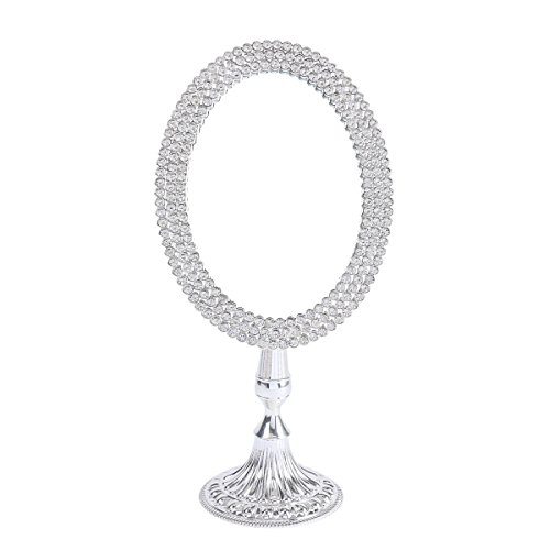 Damara Womens Ellipse Rhinestones Cosmetic Mirror Single-side Toilet Glass
