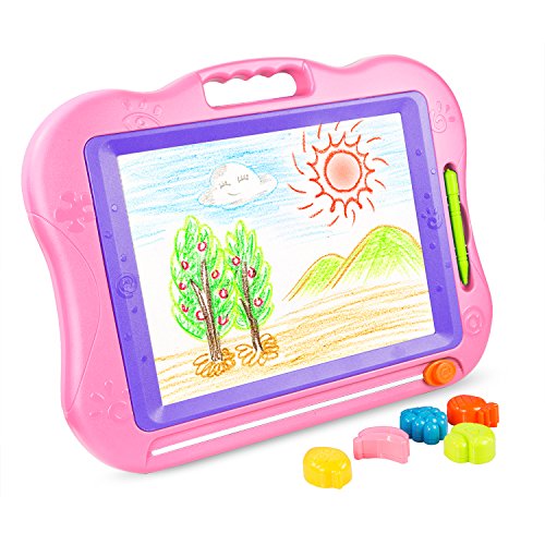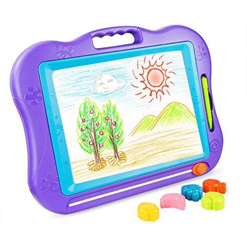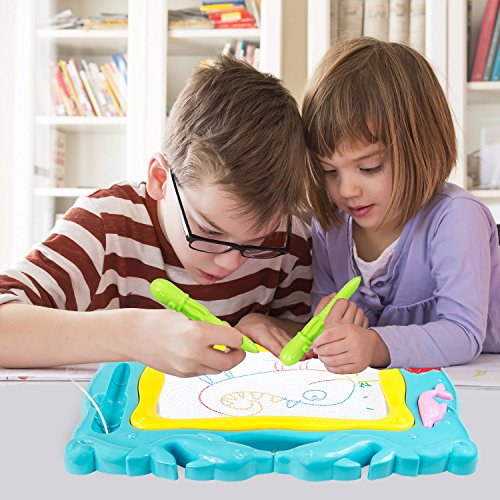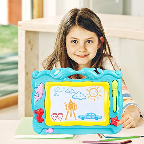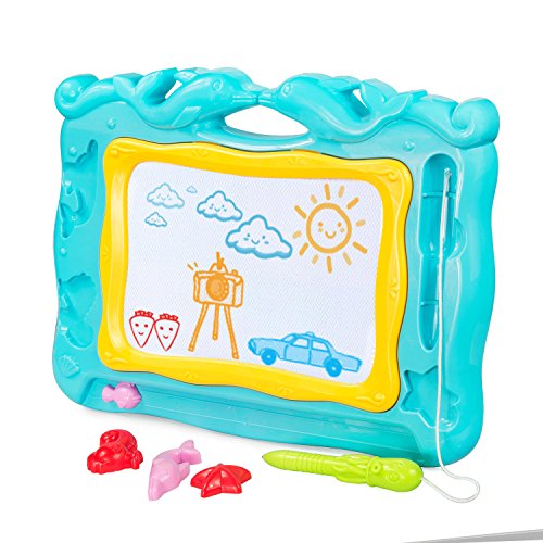 Help your children develop creativity and hand-eye coordination while learning colors, letters, and numbers by drawing on the magnetic sketch.