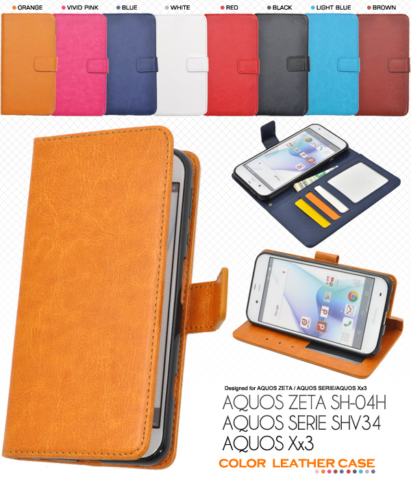 AQUOS ZETA(SH-04H)/AQUOS SERIE(SHV34)/AQUOS Xx3用カラーレザーケースポーチ