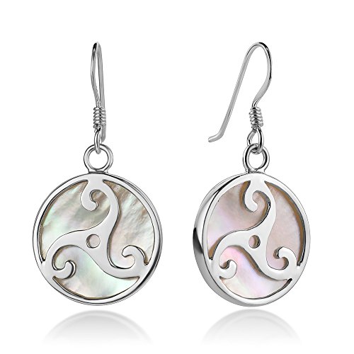 These beautiful Triskele earrings would be a wonderful addition to any of your daily wardrobe. Simple but stylish that can wear in any occasion. Made from genuine natural green abalone shell and nickel free 925 Sterling Silver, stamped 925 on both earrings and hook. The included black velvet pouch makes it a perfect gift for your love ones in any special occasion. The triskele, otherwise known as the Triskelion, is a trilateral symbol consisting of three interlocked spirals. Widely regarded as one of the oldest Irish symbols in existence, it appears on the Newgrange kerbstones, which date from approximately 3200 BC. Triskeles feature prominently in both ancient and modern Celtic art, as they evoke the Celtic interpretation of the three realms of material existence: earth, water, and sky (and all their interconnections). The symbol is also thought to represent the three worlds: spiritual, physical, and celestial.