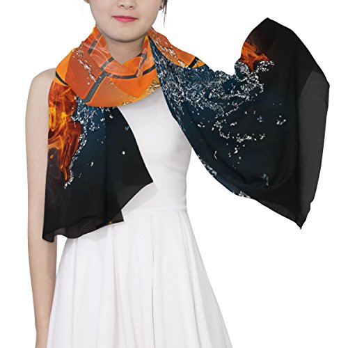 (ALAZA)/Accessories/Cold Weather Accessories/DIRECT FROM USA/Cooper girl Basketball Fire And Water Silk Scarf Shawl Wrap for Women Girls