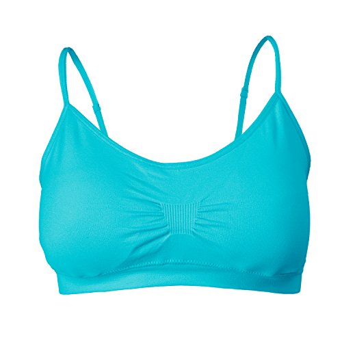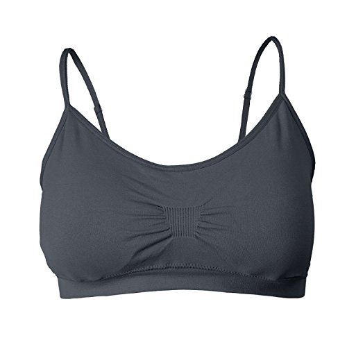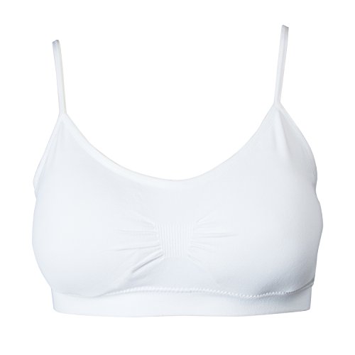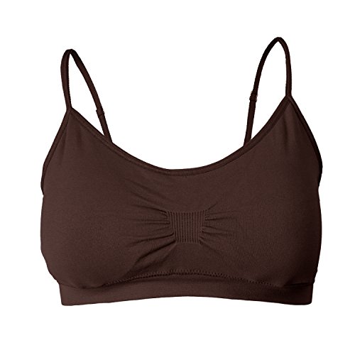 Slightly padded comfort bra for everyday use. They provide shape and support and may be worn in place of a camisole or tank top. Ruching at center for bust shape Ribbing on sides for comfort. So comfortable it's great for sleeping. One-size fits 32A to 36D. Plus-size fits 36C to 44D.