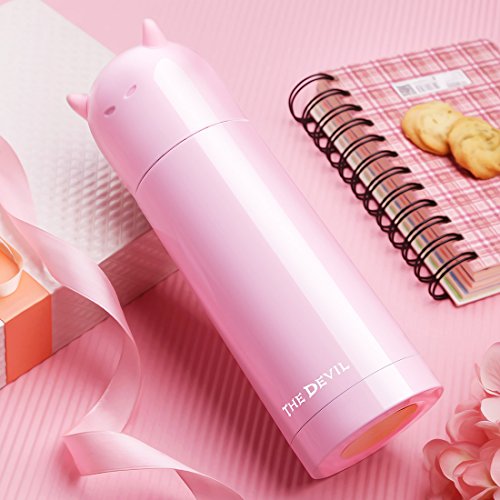 QILEYIN 350ml Stainless Steel Vacuum Insulated Leak-Proof Flask Portable Cute Thermos Travel Mug for Girls 12 Hours Hot 24 Hours Cold GYBL129 (PIink)