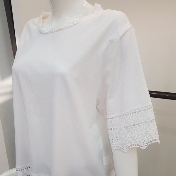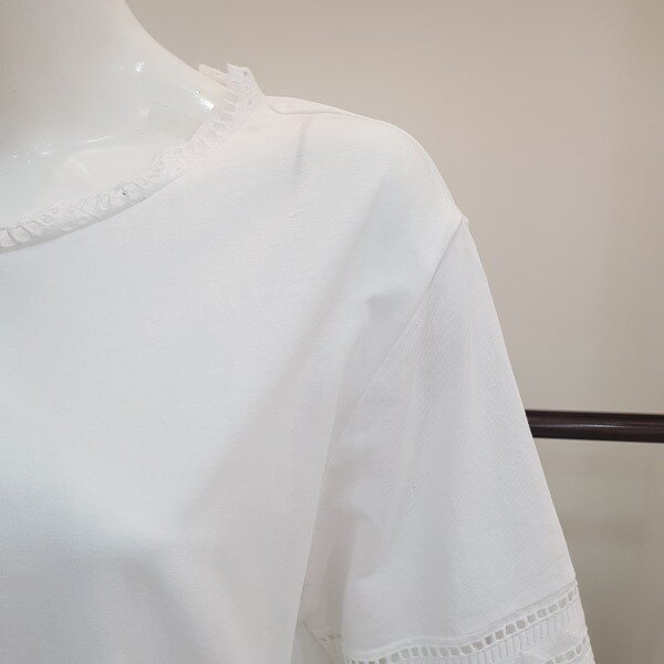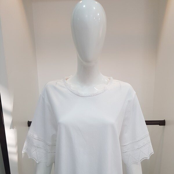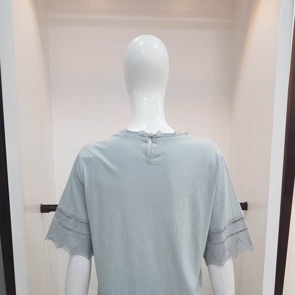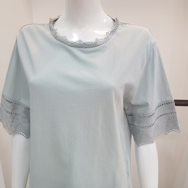 목부분 팔 허리에 레이스를포인트주고 짧은기장에 여유있는 스타일