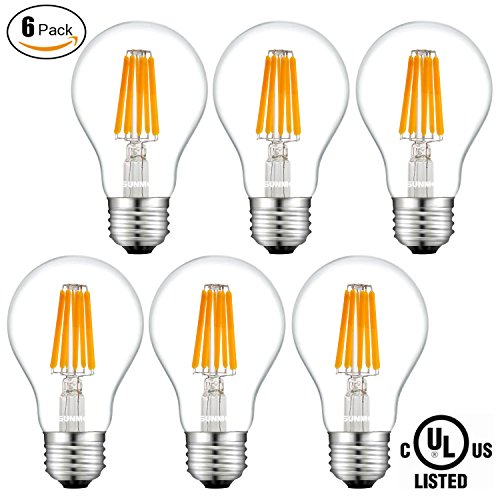 SUNMEG 8W LED Filament Light Bulb, A19 LED Light Bulb, E26 Base Globe Bulb Dimmable, 8W (80W Equivalent), 800 lumen, 2700K (Warm White) LED Edison Bulb, 6 Pack