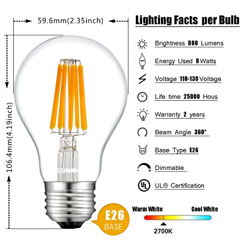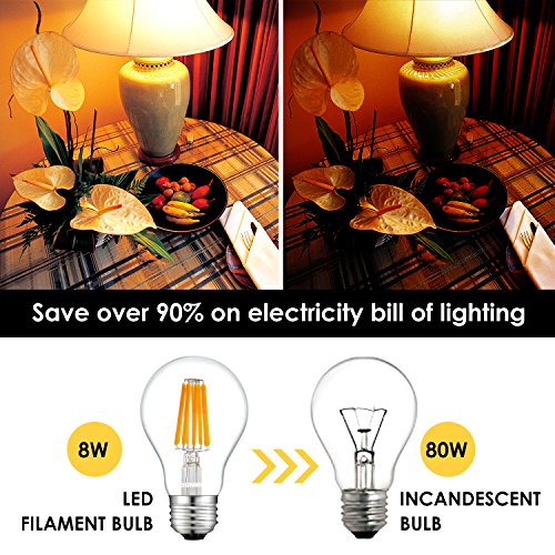 - ENERGY SAVING - Replace 80W Incandescent Bulb by 8W Filament LED Bulb, Save over 90% on Electricity Bill of Lighting