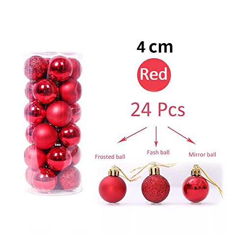 24 pcs Christmas Balls Ornaments Xmas Trees, Wedding Party Decoration Window Dressing, Christmas Tree Decoration Ball (4cm, Red)