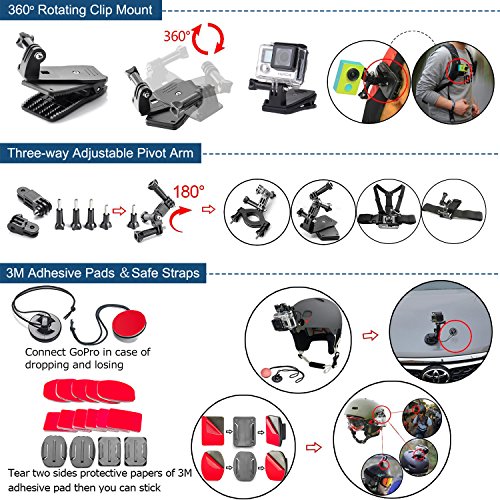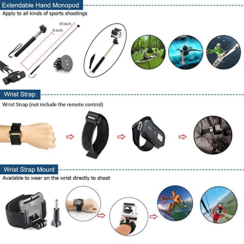 Compatible with- GoPro HERO 5 Session 4 3+ 3 2 1 Black Silver SJ4000/ SJ5000/ SJ6000, also for Xiaomi Yi/ AKASO/ WiMiUS/ Lightdow/ DBPOWER/ APEMAN/ YI/ Aokon/ ANART.