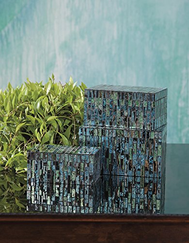 IMAX 96114-3 Aramis Set of 3 Mosaic Boxes, Black/Blue