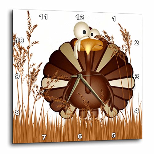 Funny Turkey in tall fall grasses for Thanksgiving wall clock is a wonderful complement to any room in your home or office. Made of durable high grade aluminum. This frameless clock has a high gloss mirror like, UV coated, scratch resistant finish and is suitable for a moist environment. Sizes available range from 10x 10to 15x 15. Requires one AA battery; not included. Battery box is not covered.Feature