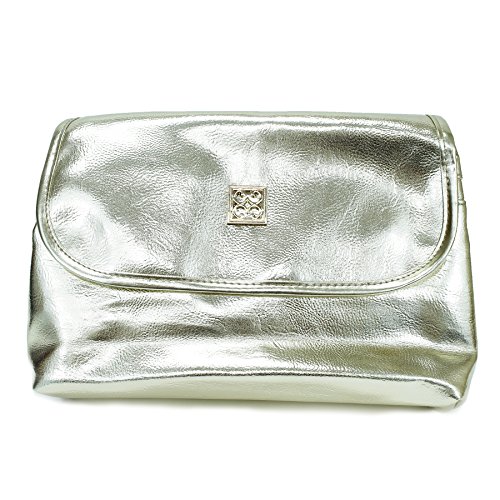 Mary Square 8"X11"X3.5" Gold Large Flap Over Makeup Bag
