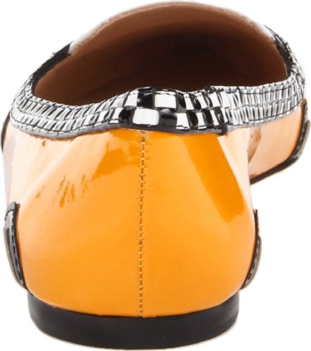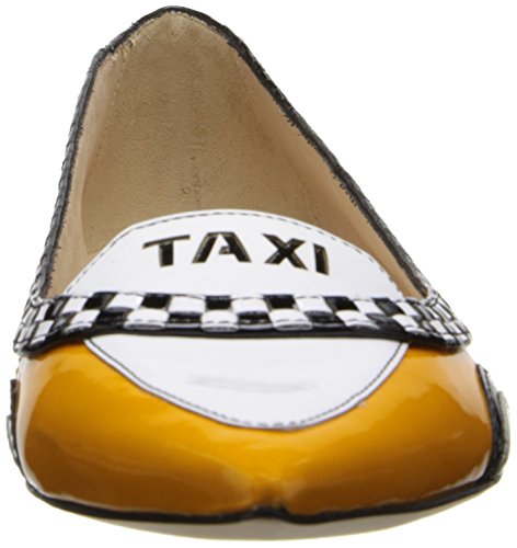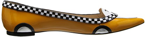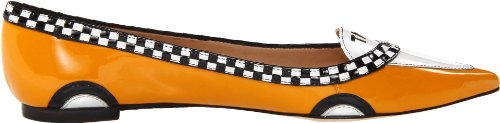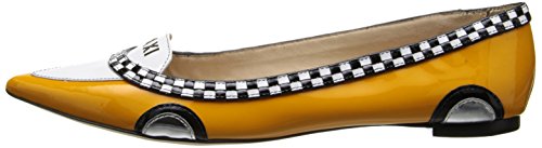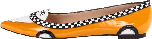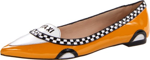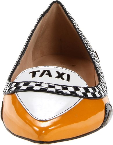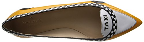 Product DescriptionPatent leather forms a playful taxi design on these pointed-toe Kate Spade New York flats. Rubber patch at low, stacked heel. Leather sole.0