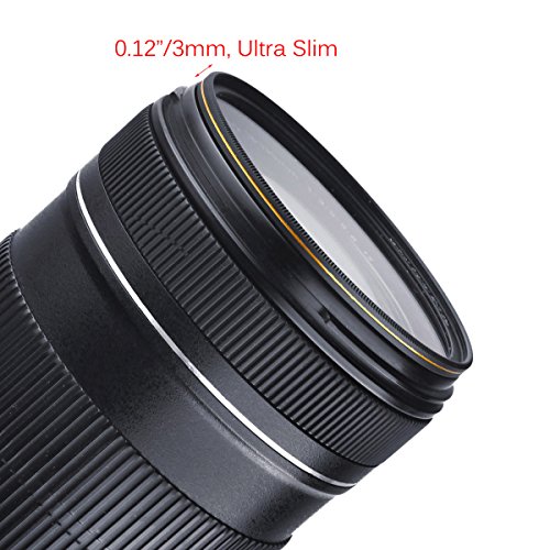 ULTRA SLIM: only 3mm in depth, slim profile design ideal for wide angle lenses. A golden line on circle adds beauty to the filter and your DSLR camera.