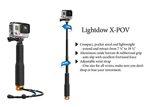 Hole with the Lightdow X-POV Pole more of your shots out. Attach your camera directly to this handy telescopic rod without having to buy additional parts. The pleasant handle fits comfortably in your hand and lets you carry your Action Cam easily. Gain the benefits of new film perspectives in the exercise of action sports!