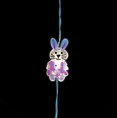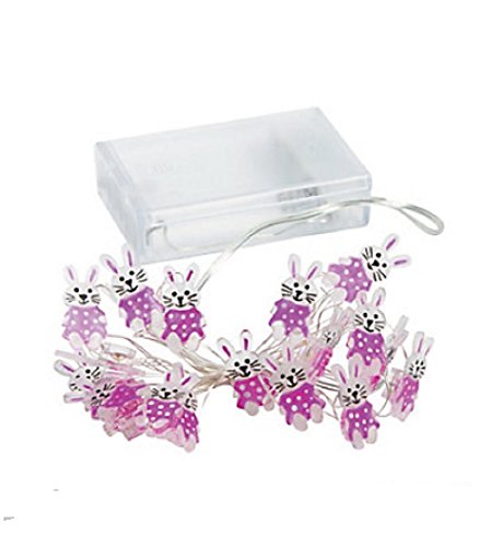 - This light set features a string of smiling Easter Bunnies outfitted in a pink polka dot dress.