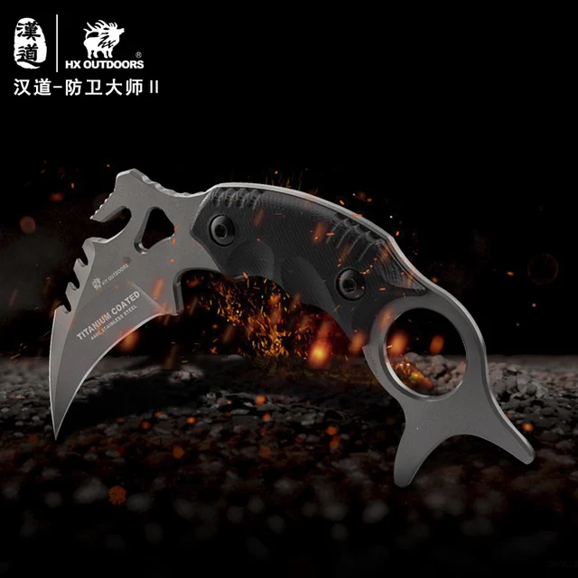 [해외] Hx 야외 karambit 고정 블레이드 나이프 440c titanium 코팅 블레이드 k10 핸들 방어 칼 캠핑 차가운 스틸 발톱 edc 칼