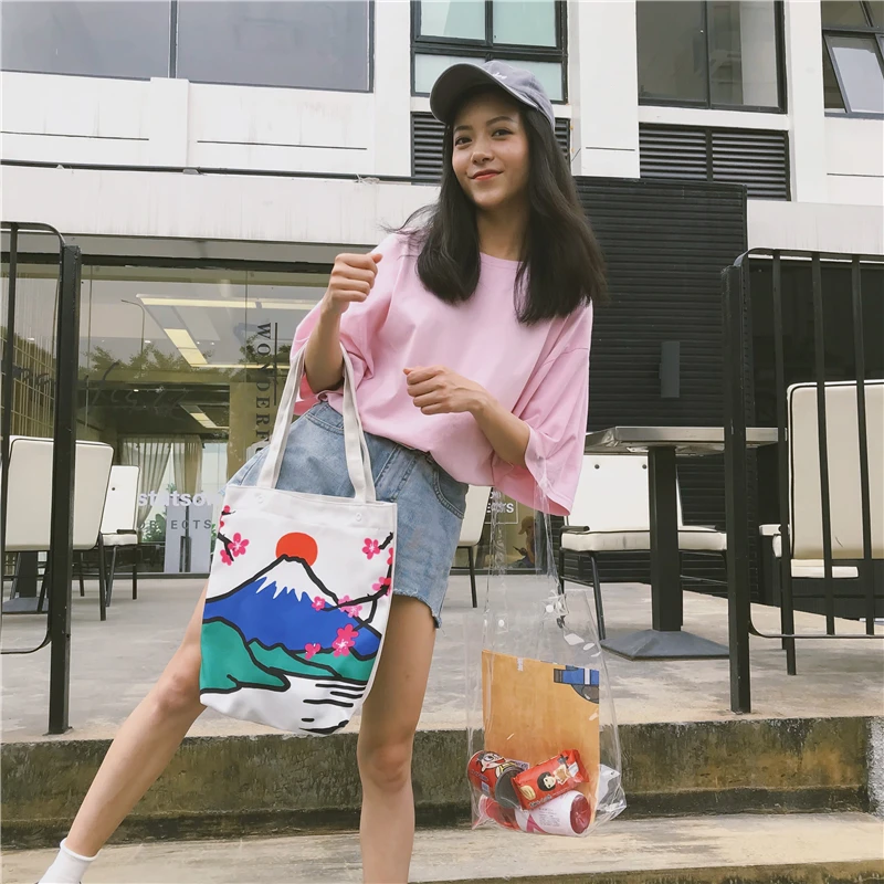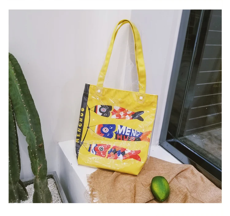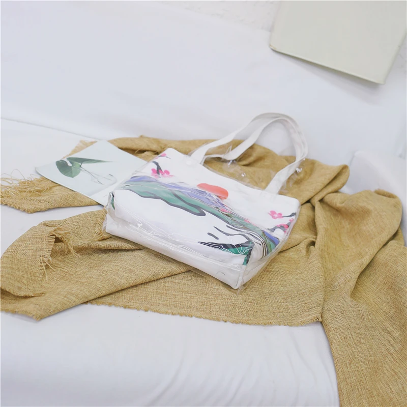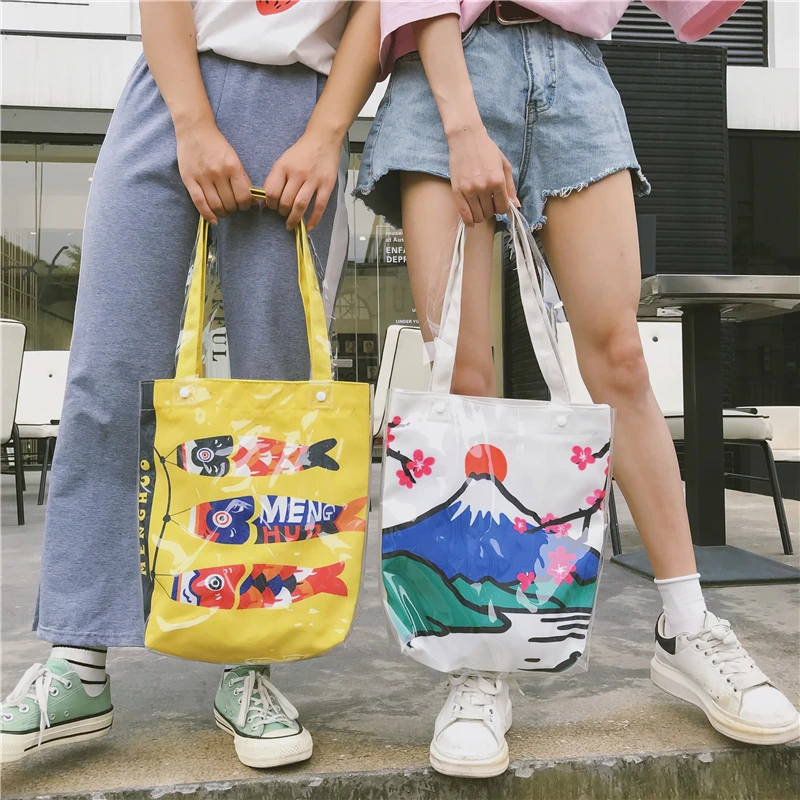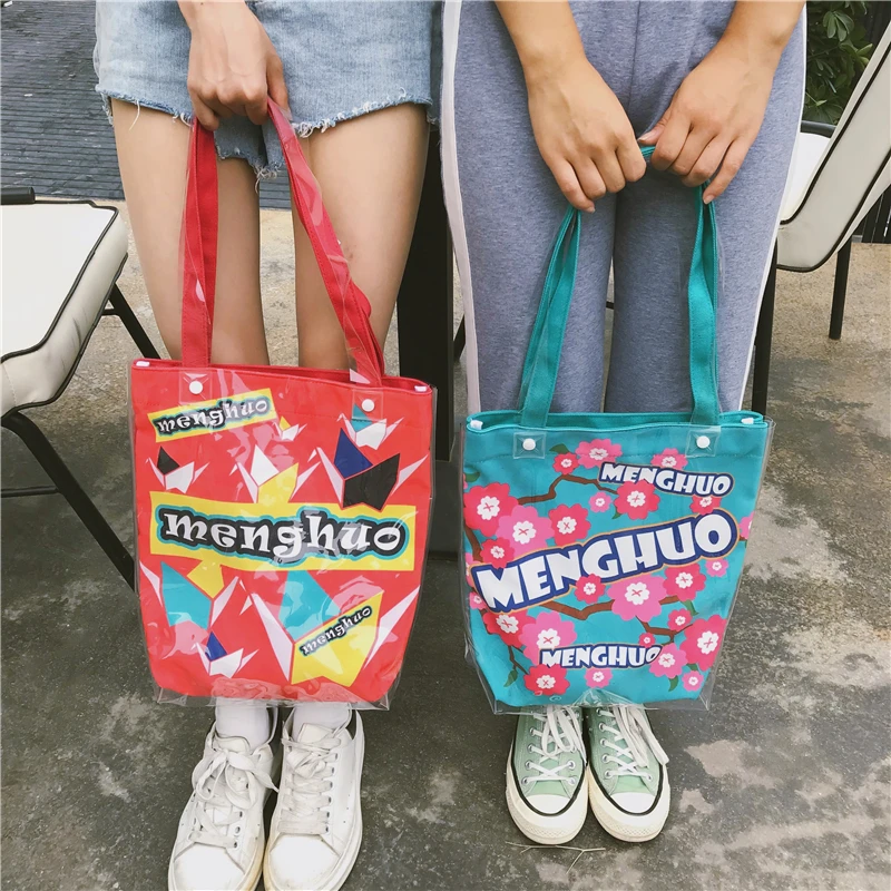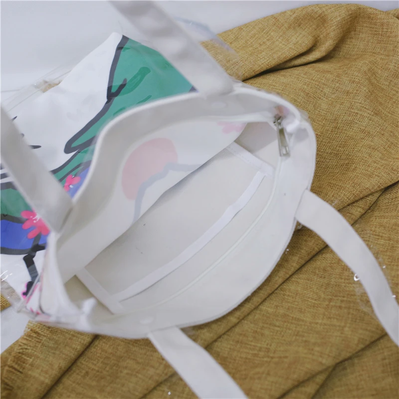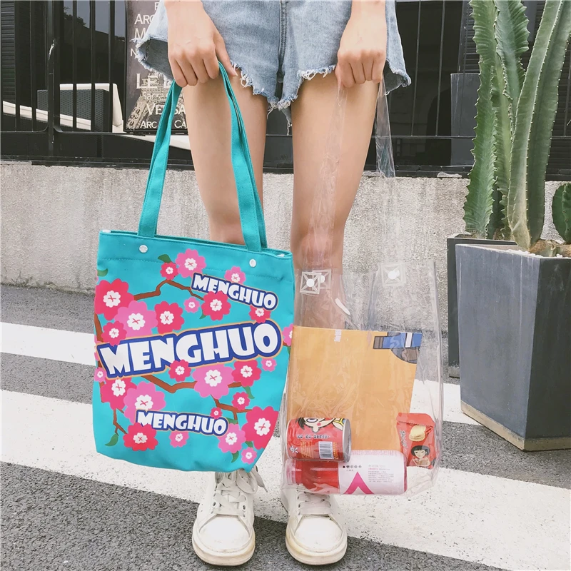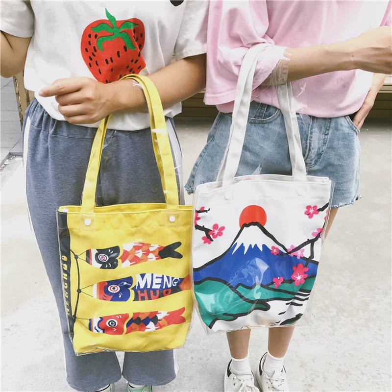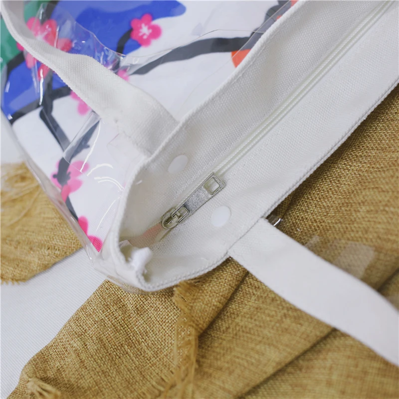 Material:Pvc and canvas handbag big tote bag shopping bag women bag