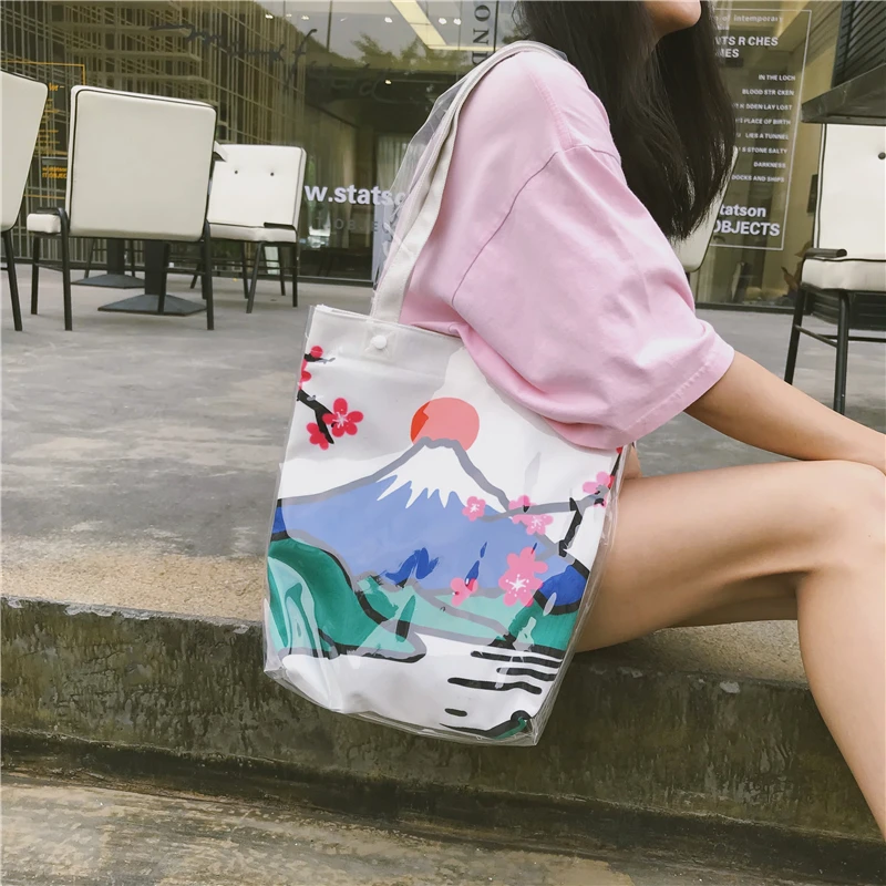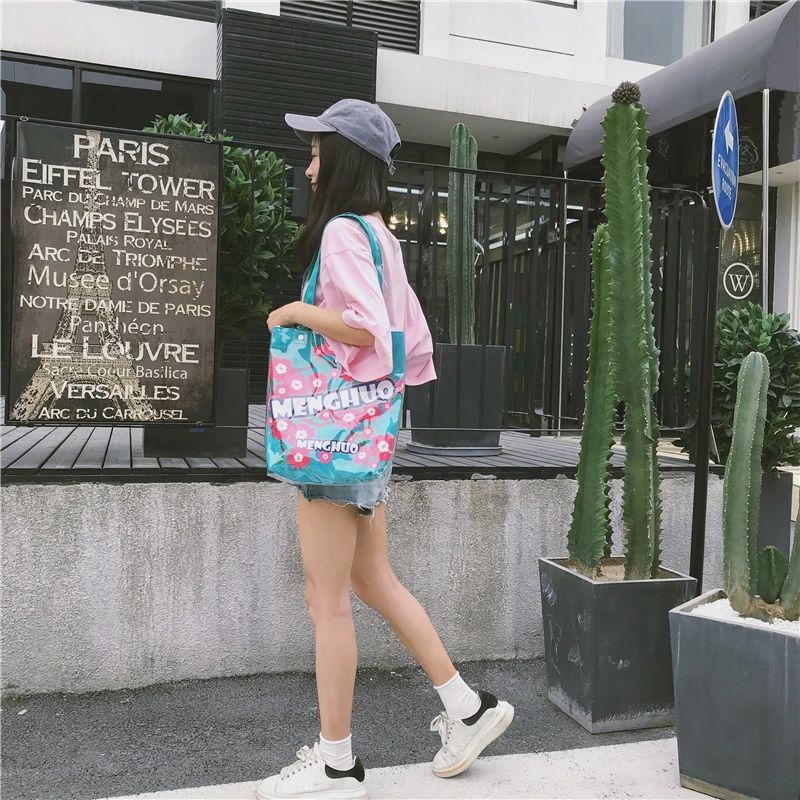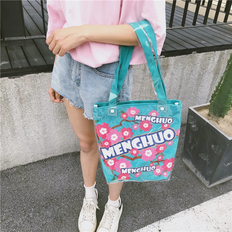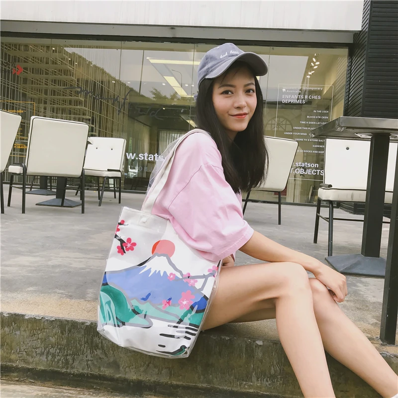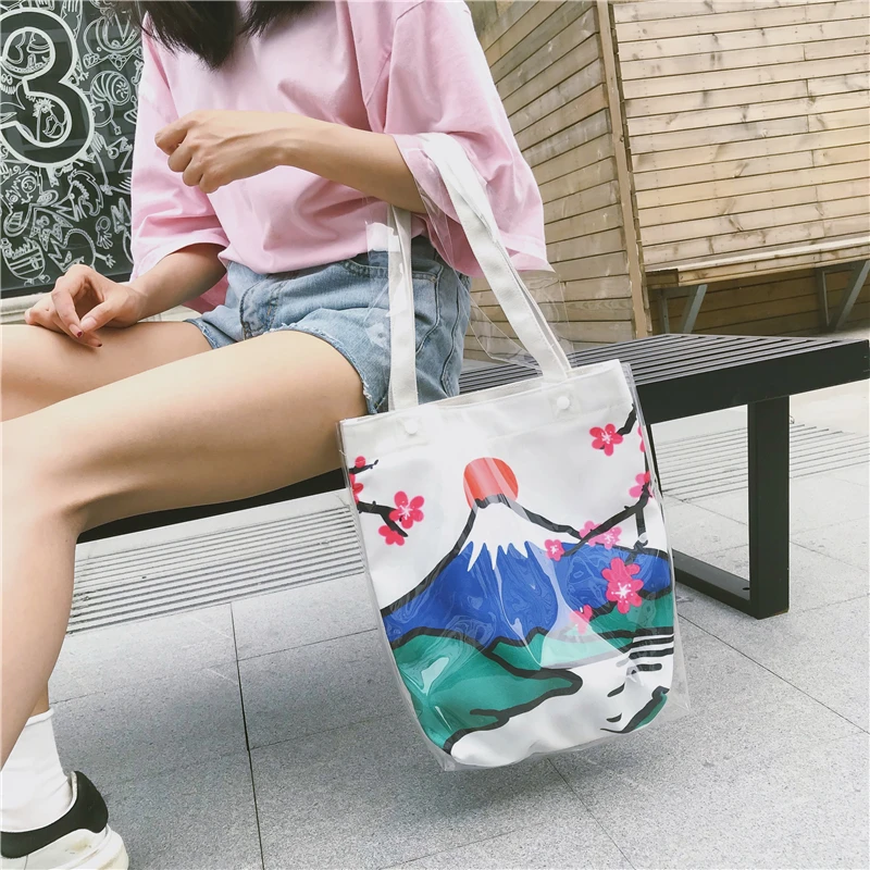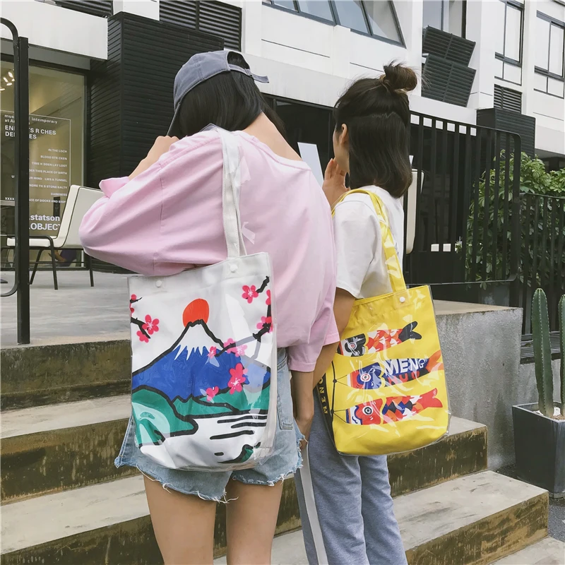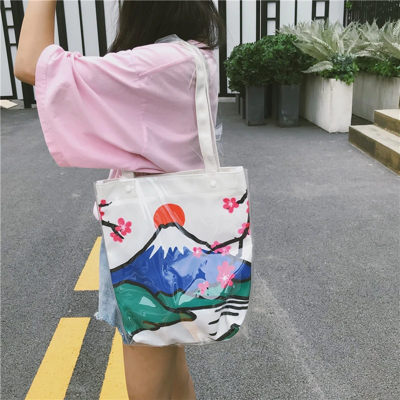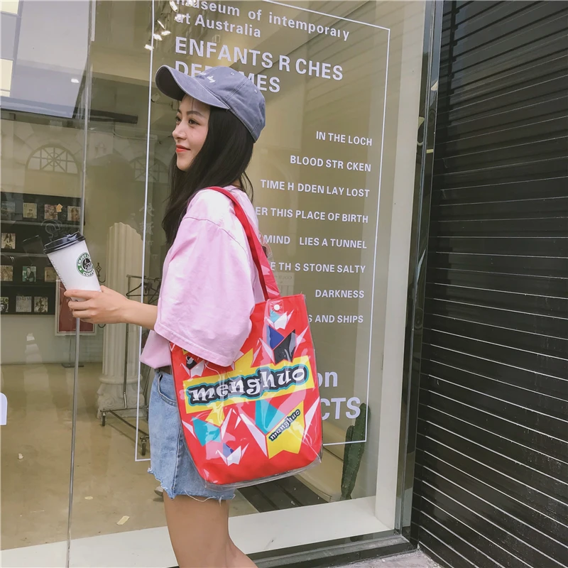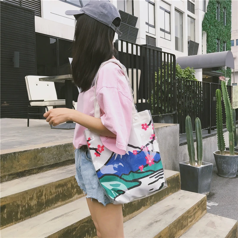 Material:Pvc and canvas handbag big tote bag shopping bag women bag