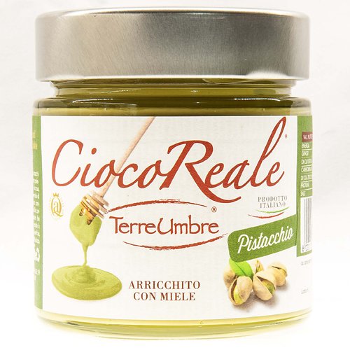 -. Feature : The goodness of Italian pistachio, the sinful richness of chocolate and the energy of honey combine to create a spreadable cream of delectable flavor and velvety smoothness. / A sweet but not too sweet spread, it is great with bread or as a filling for sweet desserts. / CioccoReale also adds Italian flair when dissolved in Espresso, black coffee or Cappuccino. Your coffee will gain nutty and sweet all-natural flavors, making each sip a special moment to savor. / This premium delight hails from the famous chocolate-making city of Perugia. / Terre Umbre is well known and appreciated in Umbria for the quality of its products.