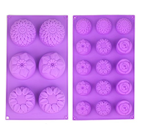 2 pack of 4 different flowers pattern / two sizes – you don’t have to pay extra and get various flower pattern soap molds. And you can also make many different shape of soaps in one time.
