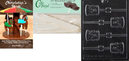Cybrtrayd 'Cute Frankenstein Lolly' Halloween Chocolate Candy Mold with 50 4.5-Inch Lollipop Sticks and Chocolatier's Guide