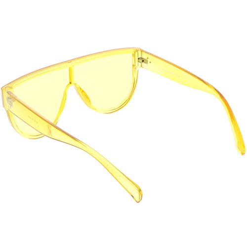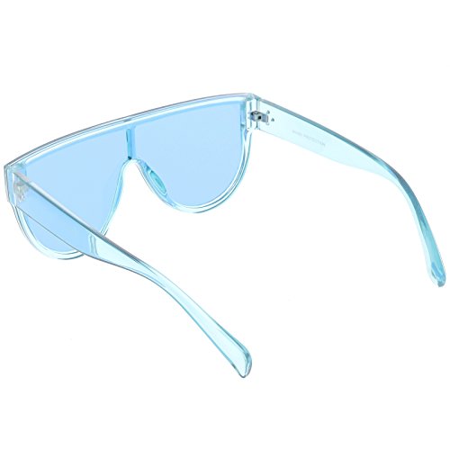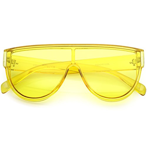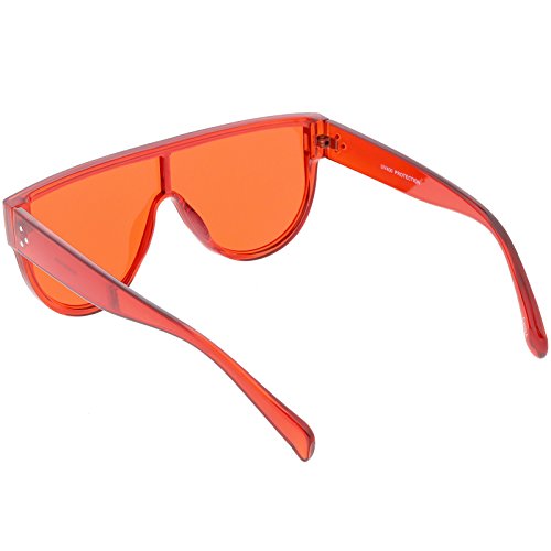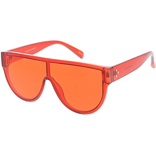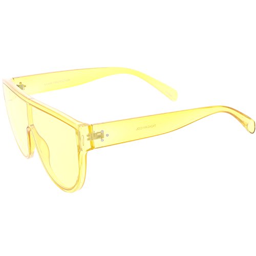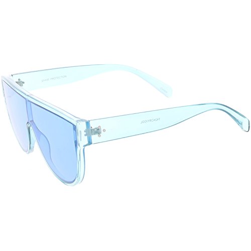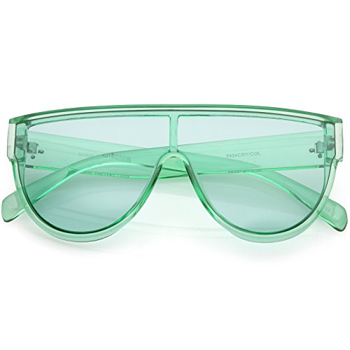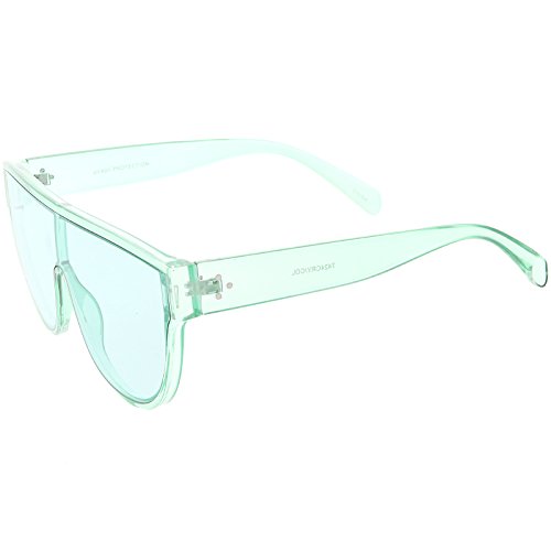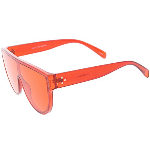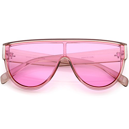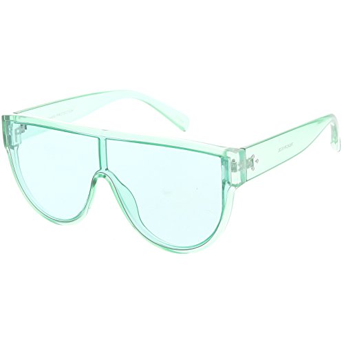 Studio : frameoptic Publisher : frameoptic Product Description Details Designed with bold lines and a slightly thicker frame, these modified shield aviator sunglasses are crafted with a sleek flat top and stylishly wide arms. Complete with a fun color tinted mono lens for that pop of color and an oversized frame, these shield aviator sunglasses are a great accessory for this season's festivals. Made with a plastic based frame, reinforced metal hinges, and 100% UV protected lenses.