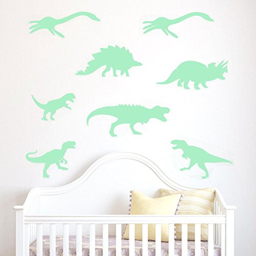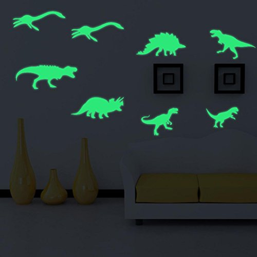 -. Title : Iuhan 8pcs Dinosaurs Wall Decals Fluorescence Stickers Glow in The Dark, Children's Room Nursery Removable Wall Stickers Murals