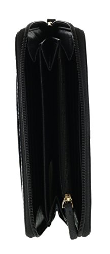 Interior features 12 card slots, 1 central zip pocket, and 2 full length bill compartments